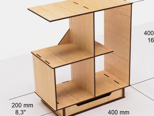 Intra απο ξύλο plywood 3mm-4mm πάχος – Επιτραπέζιο ράφι με συρτάρι κοπής με λέιζερ Δίασταση 20×20 cm INTRAFABR-113581523