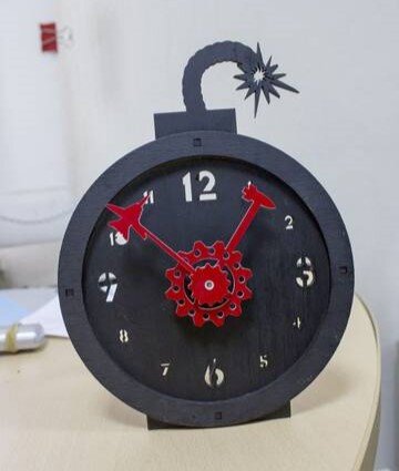 Intra απο ξύλο plywood 3mm-4mm πάχος – Επιτραπέζιο ρολόι βόμβα Δίασταση 30×30 cm Intraeaxys-yon0gyp7