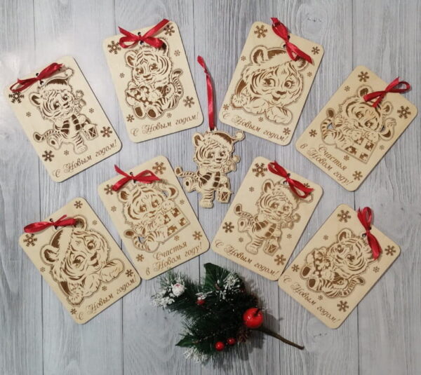 Intra απο ξύλο plywood 3mm-4mm πάχος – Ευχετήρια κάρτα Πρωτοχρονιάς με το χαριτωμένο Tiger Cub Δίασταση 30×30 cm Intraeaxys-r1z246n1