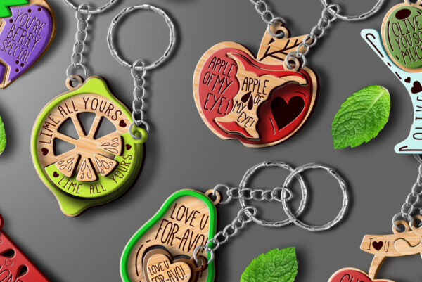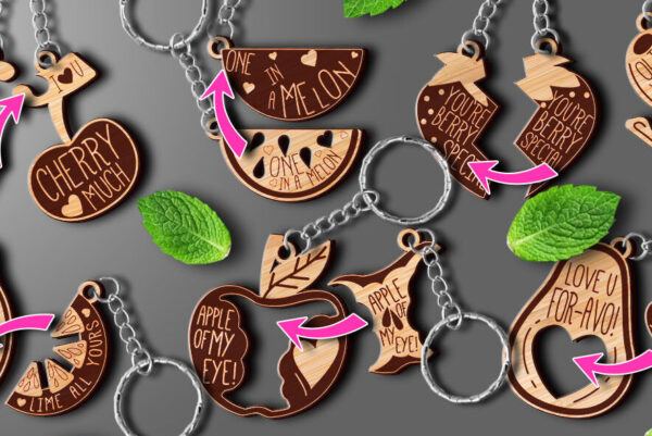 Intra απο ξύλο plywood 3mm-4mm πάχος – Ζευγάρι μπρελόκ φρούτων | Αστεία φρούτα Δίασταση 5×5 cm INTRAFABR-68200898