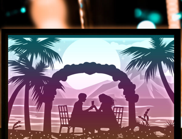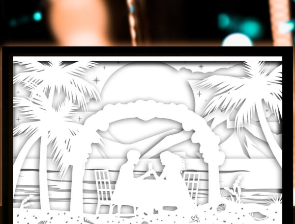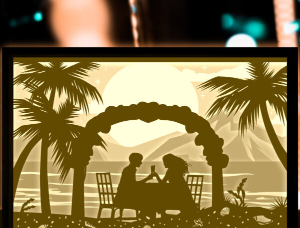 Intra απο ξύλο plywood 3mm-4mm πάχος – Ζευγάρι σε χαρτί παραλίας κομμένο φωτιστικό κουτί Δίασταση 20×20 cm INTRAFABR-27703378