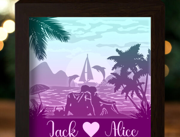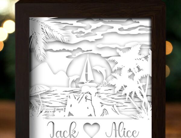 Intra απο ξύλο plywood Χρώμα wenge 3mm-4mm πάχος – Ζευγάρι στην παραλία Paper Cut Light Box Δίασταση 20×20 cm INTRAFABR-60164030