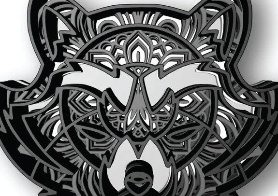 Intra απο ξύλο plywood 3mm-4mm πάχος Ζώο Mandala Raccoon, , 5 στρώματα Δίασταση 30×30 cm INTRAFABR-31685067