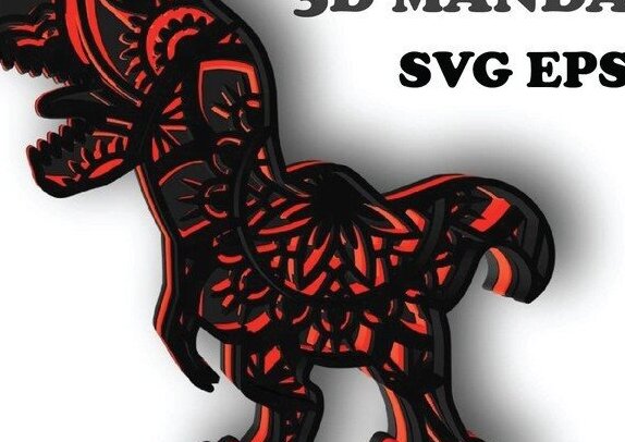 Intra απο ξύλο plywood 3mm-4mm πάχος Ζώο Mandala, T-REX, Δεινόσαυρος, 3d Δίασταση 30×30 cm INTRAFABR-31746372