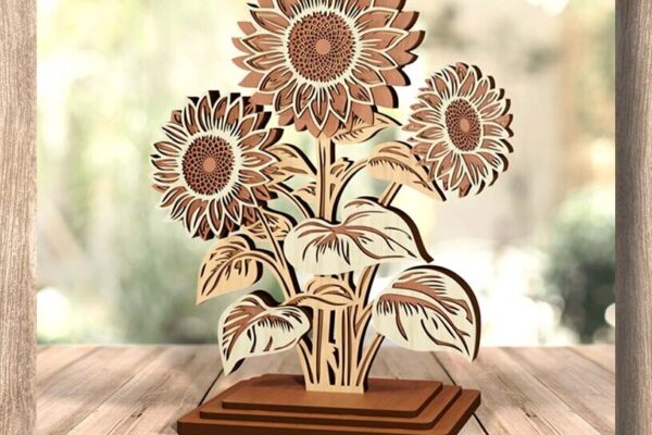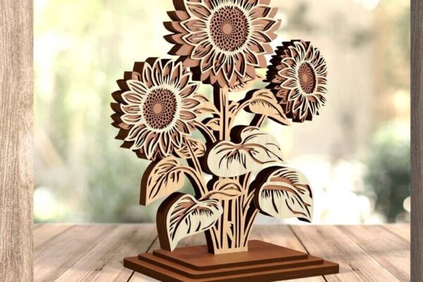 Intra απο ξύλο plywood 3mm-4mm πάχος – Ηλιοτρόπια κομμένα αρχεία με λέιζερ Διακόσμηση τραπεζιού Δίασταση 20×20 cm INTRAFABR-122928097