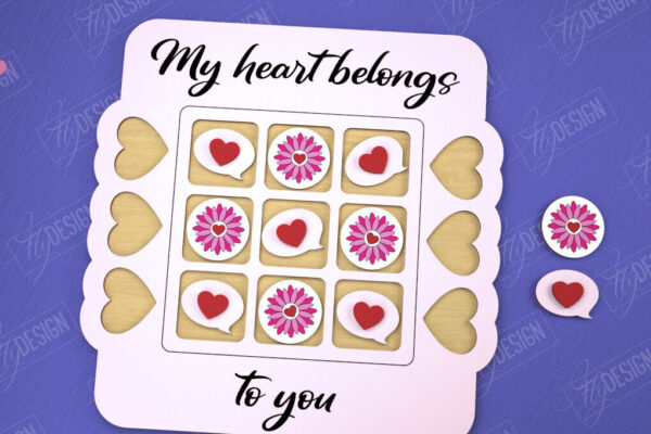 Intra απο ξύλο plywood 3mm-4mm πάχος – Ημέρα του Αγίου Βαλεντίνου Tic Tac Toe|Κλασικό παιχνίδι Δίασταση 20×20 cm INTRAFABR-109290073