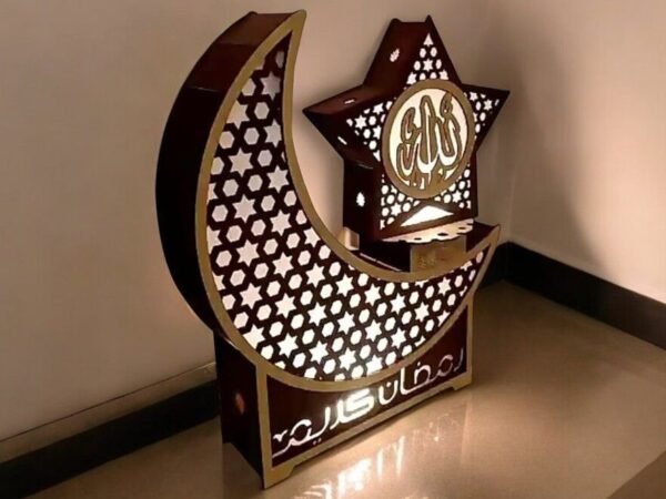 Intra απο ξύλο plywood 3mm-4mm πάχος – Ημισέληνος με αστέρι Ramadan Fanoos 25×30 cm INTRAVECTRY-MY542213