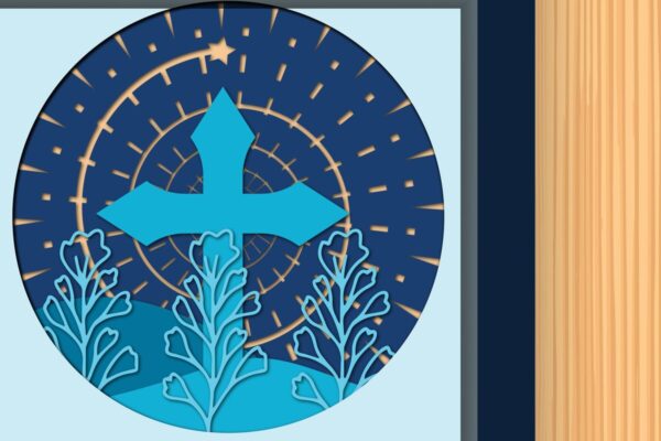 Intra απο ξύλο plywood 3mm-4mm πάχος – Θρησκευτικό διασταυρούμενο σκιερό κουτί με πολλαπλές πίστες Δίασταση 20×20 cm INTRAFABR-34915313