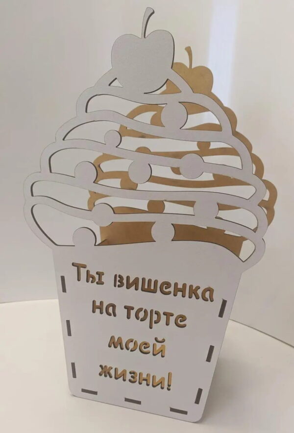 Intra απο ξύλο plywood 3mm-4mm πάχος – Καλάθι δώρου σε σχήμα Cupcake Δίασταση 30×30 cm Intraeaxys-qommxxpo