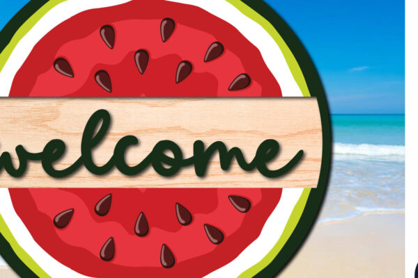 Intra απο ξύλο plywood 3mm-4mm πάχος – Καλοκαιρινή πινακίδα πόρτας καλωσορίσματος με καρπούζι Δίασταση 20×20 cm INTRAFABR-29079197