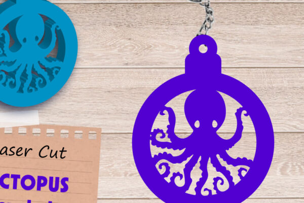 Intra απο ξύλο plywood 3mm-4mm πάχος – Καλοκαιρινό μπρελόκ, Αρχείο κοπής με λέιζερ χταποδιού Δίασταση 5×5 cm INTRAFABR-109058920