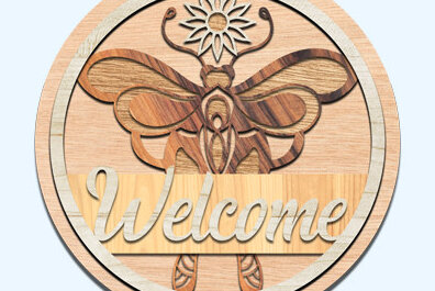 Intra απο ξύλο plywood 3mm-4mm πάχος – Καλωσόρισμα Στρογγυλή πινακίδα Κρεμάστρα πόρτας Κοπή λέιζερ Δίασταση 20×20 cm INTRAFABR-60924201