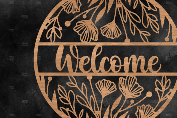 Intra απο ξύλο plywood 3mm-4mm πάχος – Καλωσόρισμα Floral στρογγυλή πινακίδα Δίασταση 20×20 cm INTRAFABR-116341182