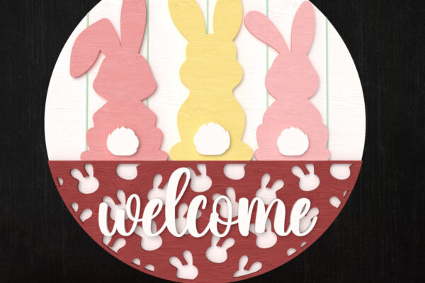 Intra απο ξύλο plywood 3mm-4mm πάχος – Καλώς ήλθατε Bunny Πασχαλινό κομμένο λέιζερ σημάδι Δίασταση 20×20 cm INTRAFABR-113850883