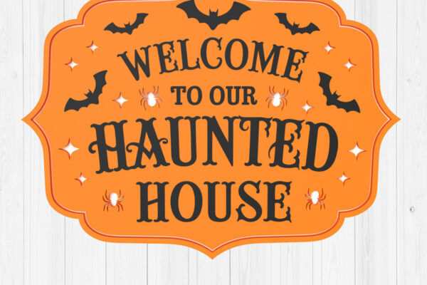 Intra απο ξύλο plywood 3mm-4mm πάχος – Καλώς ήρθατε στο Our Haunted House Sign Δίασταση 40×30 cm INTRAFABR-106046618