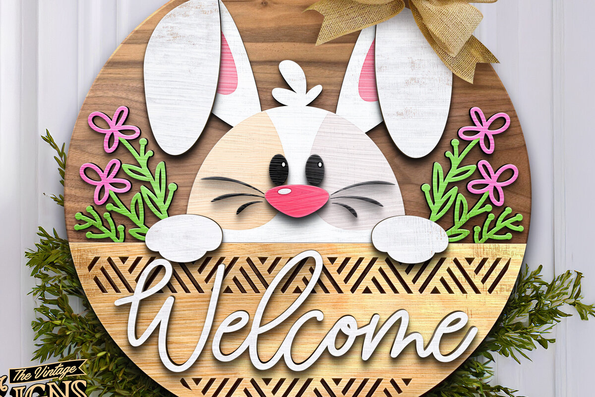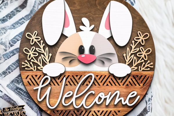 Intra απο ξύλο plywood 3mm-4mm πάχος – Καλώς ήρθατε Bunny Flowers | Κρεμάστρα πόρτας Δίασταση 20×20 cm INTRAFABR-117240237
