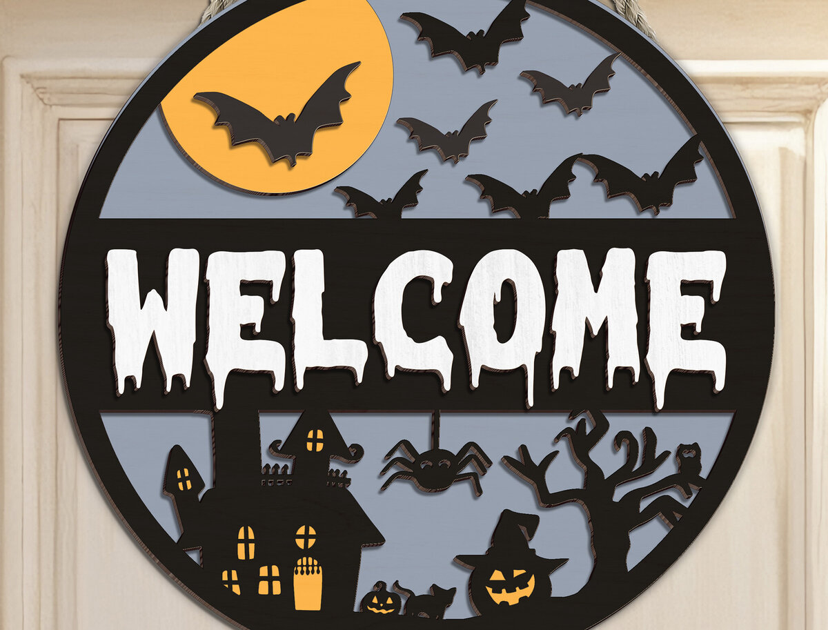 Intra απο ξύλο plywood 3mm-4mm πάχος – Καλώς ορίσατε Αποκριάτικη πινακίδα πόρτας Αποκοπή αρχείου Δίασταση 20×20 cm INTRAFABR-102202810
