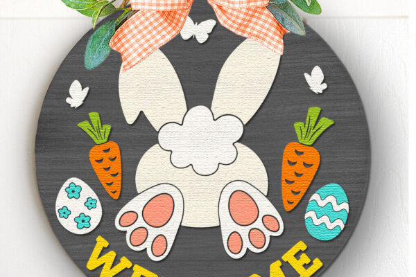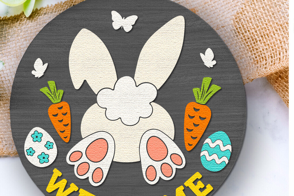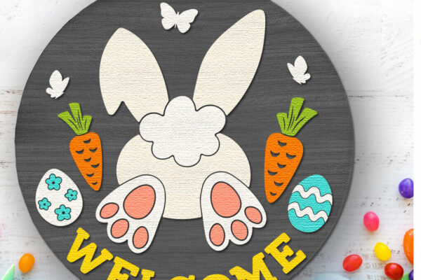 Intra απο ξύλο plywood 3mm-4mm πάχος – Καλώς ορίσατε Bunny, Πασχαλινή επιγραφή DXF Δίασταση 20×20 cm INTRAFABR-117204558