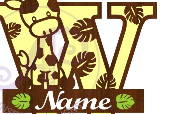 Intra απο ξύλο plywood 3mm-4mm πάχος – Καμηλοπάρδαλη κεφαλαίο W Μονόγραμμα Δίασταση 30×20 cm INTRAFABR-69377513