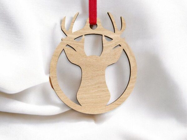 Intra απο ξύλο plywood 3mm-4mm πάχος – Κεφάλι ελαφιού με χριστουγεννιάτικο μπιχλιμπίδι με ελαφοκέρατα 10×10 cm INTRAVECTRY-MY542715
