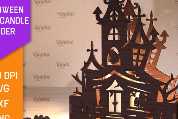 Intra απο ξύλο plywood Χρώμα wenge 3mm-4mm πάχος – Κηροπήγια Halloween House Δίασταση 15×15 cm INTRAFABR-72053931