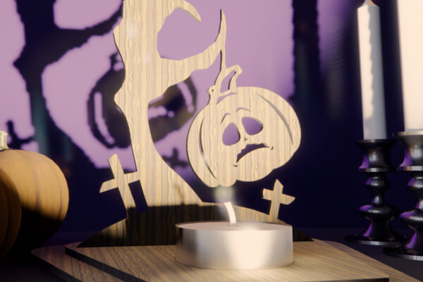 Intra απο ξύλο plywood Χρώμα wenge 3mm-4mm πάχος – Κηροπήγιο αποκριών. 3D Pumpkin Δίασταση 15×15 cm INTRAFABR-14861664
