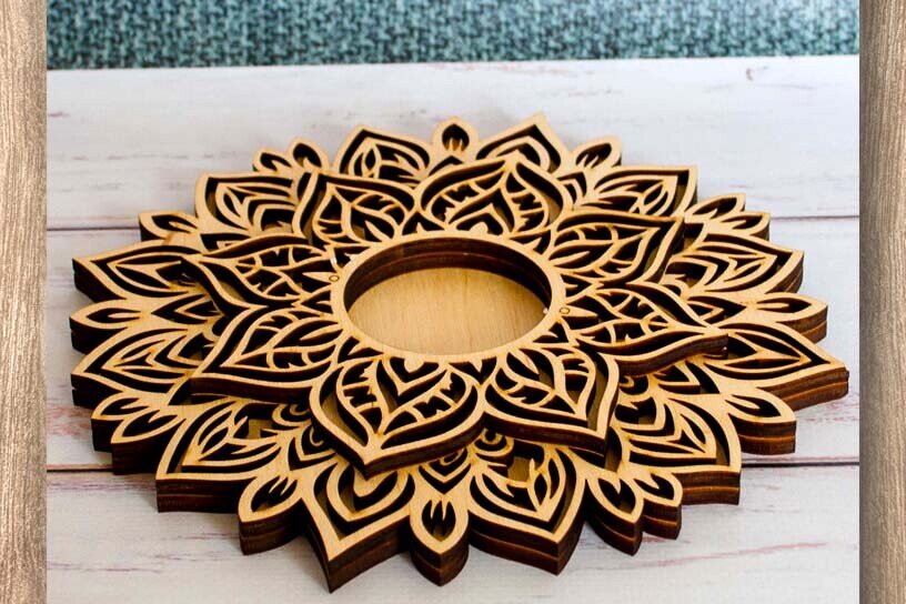 Intra απο ξύλο plywood 3mm-4mm πάχος Κηροπήγιο κοπής με λέιζερ Mandala Δίασταση 6×6 cm INTRAFABR-112114166