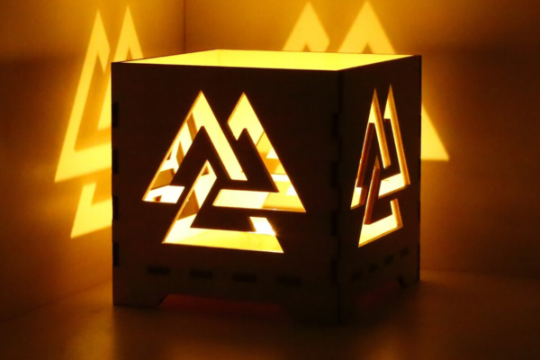 Intra απο ξύλο plywood 3mm-4mm πάχος – Κηροπήγιο συμβόλων Valknut Viking Δίασταση 20×20 cm INTRAFABR-111087693