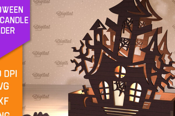 Intra απο ξύλο plywood Χρώμα wenge 3mm-4mm πάχος – Κηροπήγιο Halloween House Δίασταση 15×15 cm INTRAFABR-91217659