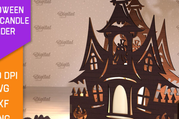Intra απο ξύλο plywood Χρώμα wenge 3mm-4mm πάχος – Κηροπήγιο Halloween House Δίασταση 15×15 cm INTRAFABR-71842814