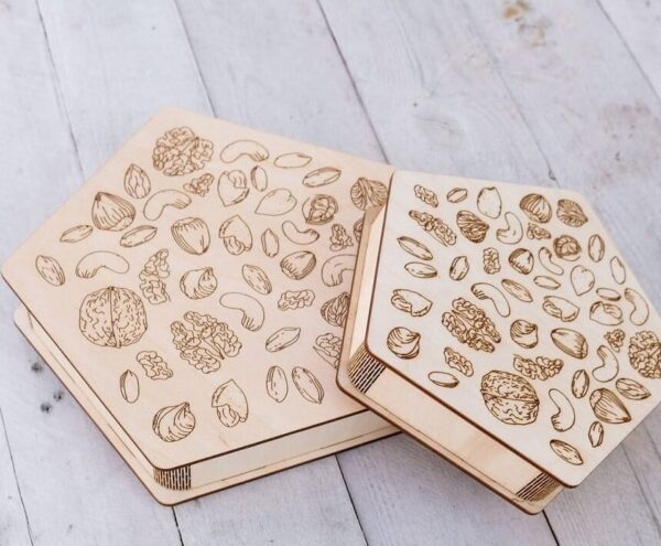 Intra απο ξύλο plywood 3mm-4mm πάχος – Κιβώτιο δώρου για καρύδια με λέιζερ ξύλο χαρακτικής 15×15 cm INTRAVECTRY-MY555080