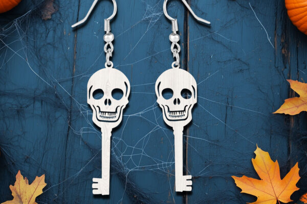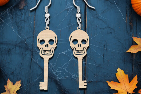 Intra απο ξύλο plywood 3mm-4mm πάχος – Κλειδί κρανίου αποκριάτικα σκουλαρίκια με λέιζερ Δίασταση 5×5 cm INTRAFABR-120902532