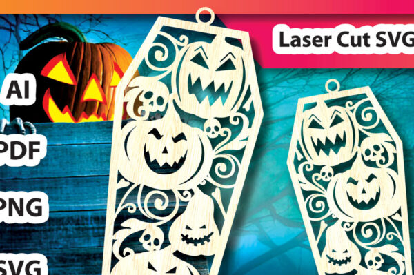 Intra απο ξύλο plywood 3mm-4mm πάχος – Κολοκύθα σε φέρετρο αποκριάτικα στολίδια Δίασταση 20×20 cm INTRAFABR-104601886