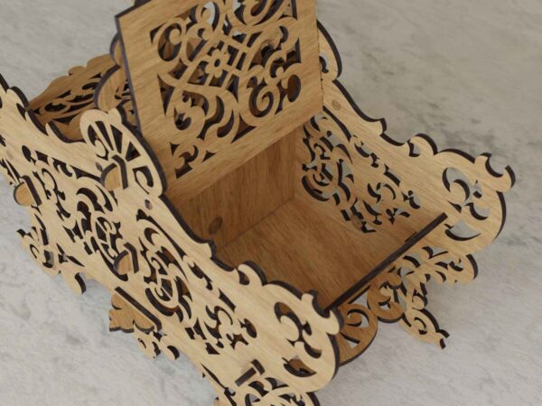 Κομψό Laser Cut Box Κουτί δώρου Πρόκειται για ψηφιακό σχεδίου, ιδανικό για κοπή με ή plotter. Κατασκευασμένο απο Ξύλο από plywood [3mm ή 4mm], κομμένο με ακρίβεια στην βιοτεχνία Intrahome . Το φυσικό ξύλο προσφέρει μια κομψή, αυθεντική υφή και μπορεί εύκολα να βαφτεί ή να διακοσμηθεί σύμφωνα με το προσωπικό σας γούστο. Ελληνική παραγωγή – Κατασκευάζεται στην Ελλάδα με προσοχή στη λεπτομέρεια και υψηλές προδιαγραφές ποιότητας. ✔️ Υλικό: Plywood υψηλής ποιότητας ✔️ Διατίθεται σε πάχος 3mm ή 4mm ✔️ Ελαφρύ, ανθεκτικό και εύκολο στη χρήση ✔️ Ιδανικό για βάψιμο, χάραξη, κόλληση και χειροτεχνίες ✔️ Κατάλληλο για μπομπονιέρες, διακόσμηση, δώρα και DIY projects ✅ Εγγύηση 2 ετών – Σε περίπτωση σπασίματος, η αντικατάσταση γίνεται άμεσα, χάρη στην τοπική ελληνική παραγωγή μας. Ιδανικό για δημιουργικούς ανθρώπους που αγαπούν το DIY. Μπορεί να γίνει ξεχωριστό δώρο με προσωπικό χαρακτήρα. Φέρνει “χειροποίητη” αισθητική στη διακόσμηση. -files- Ελληνική χειροποίητη παραγωγή → στηρίζετε τοπικούς δημιουργούς. Κάθε κομμάτι έχει τη δική του φυσική ξύλινη υφή (μοναδικότητα). Δυνατότητα ειδικής παραγγελίας (άλλα μεγέθη / σχήματα). Άμεση ανταπόκριση & υποστήριξη. Εγγύηση αντικατάστασης (ήδη το έχεις). Μπορεί να μετατραπεί σε προσωποποιημένο αντικείμενο με χάραξη ή χρώμα. -files– Μη τοξικό υλικό → ασφαλές για παιδιά (με επίβλεψη). Ελαφρύ και εύκολο στη μεταφορά. Συσκευάζεται με προστασία για να φτάνει πάντα άθικτο. -files–files- Ιδανικό για event planners, καταστήματα ειδών δώρου, κατασκευαστές . Διατίθεται σε χονδρική με ειδικές τιμές & εκπτώσεις σε ποσότητα. Ανοιχτές Αποχρώσεις
