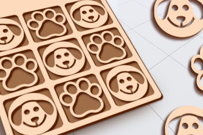 Intra απο ξύλο plywood Χρώμα wenge 3mm-4mm πάχος – κοπής λέιζερ παιχνιδιού Dog Tic Tac Toe Δίασταση 15×15 cm INTRAFABR-71163785