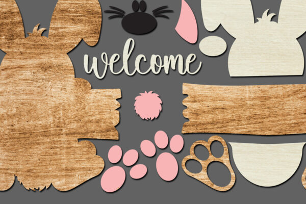 Intra απο ξύλο plywood Χρώμα wenge 3mm-4mm πάχος – κοπής με λέιζερ καλωσορίσματος Easter Bunny Δίασταση 15×15 cm INTRAFABR-122663970