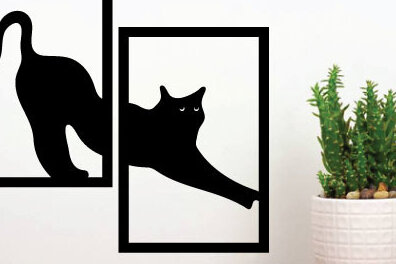 Intra απο ξύλο plywood 3mm-4mm πάχος κοπής με λέιζερ μεταλλικού τοίχου Cat Δίασταση 40×40 cm INTRAFABR-72109432