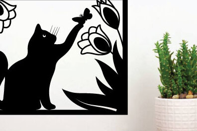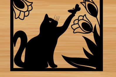 Intra απο ξύλο plywood 3mm-4mm πάχος κοπής με λέιζερ μεταλλικού τοίχου Cat Δίασταση 40×40 cm INTRAFABR-72109535