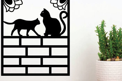 Intra απο ξύλο plywood 3mm-4mm πάχος κοπής με λέιζερ μεταλλικού τοίχου Cat Δίασταση 40×40 cm INTRAFABR-72337144