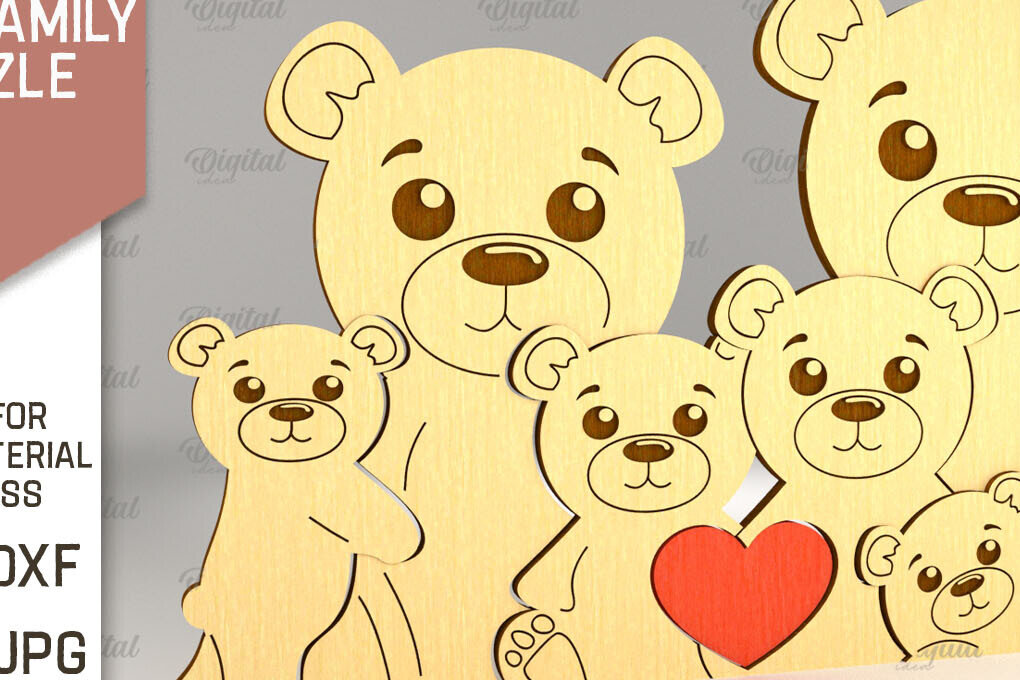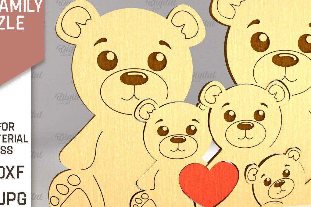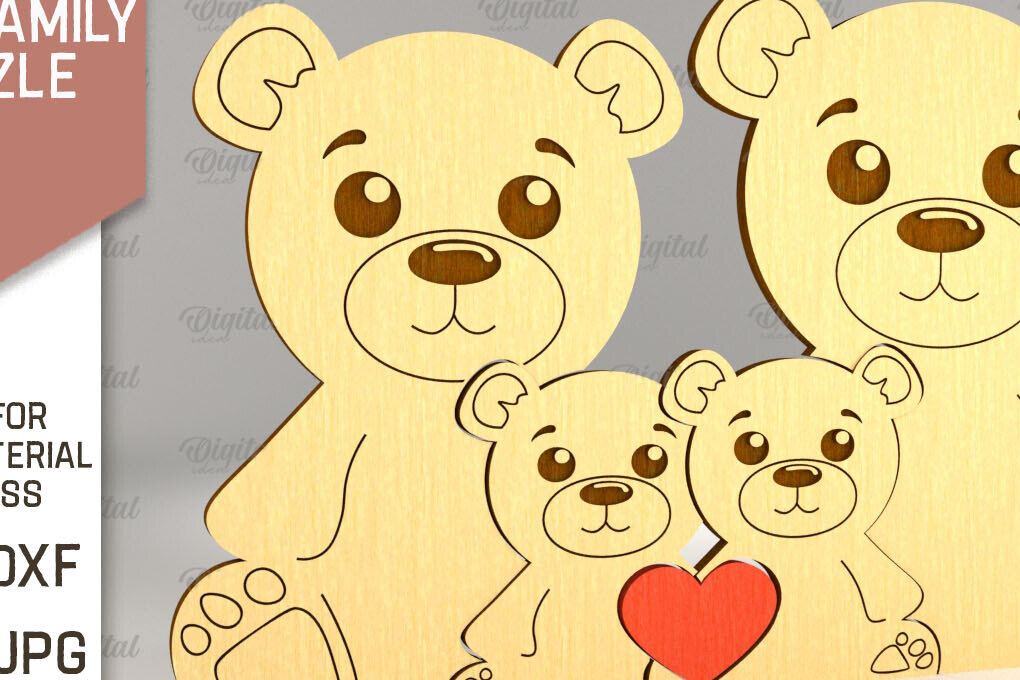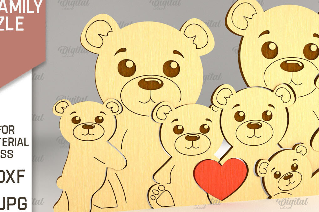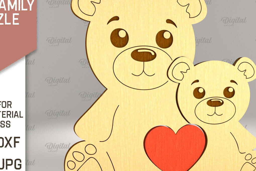 Intra απο ξύλο plywood 3mm-4mm πάχος κοπής με λέιζερ οικογενειακού παζλ Bear Δίασταση 30×20 cm INTRAFABR-90001981