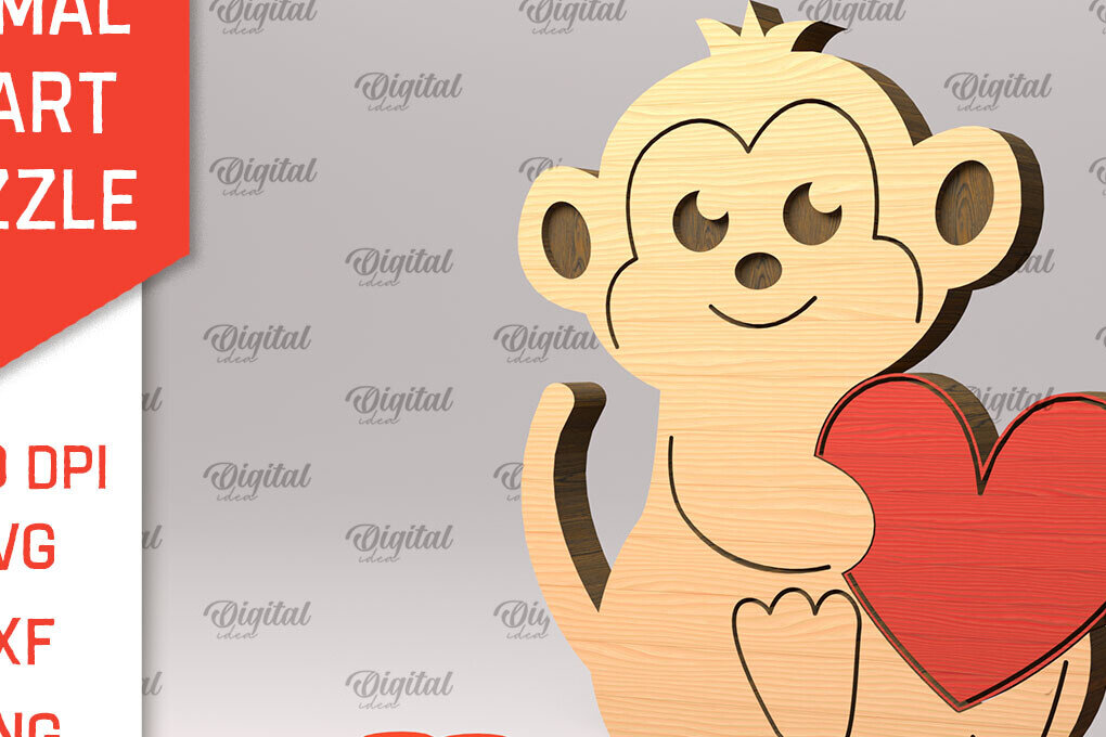 Intra απο ξύλο plywood 3mm-4mm πάχος κοπής με λέιζερ παζλ με καρδιά ζώων Δίασταση 6×6 cm INTRAFABR-97721643