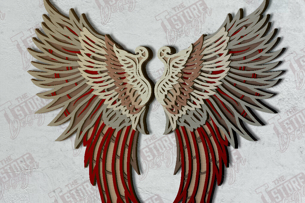 Intra απο ξύλο plywood 3mm-4mm πάχος κοπής με λέιζερ πολλαπλών στρώσεων Angel Wings Δίασταση 15×15 cm INTRAFABR-121521435