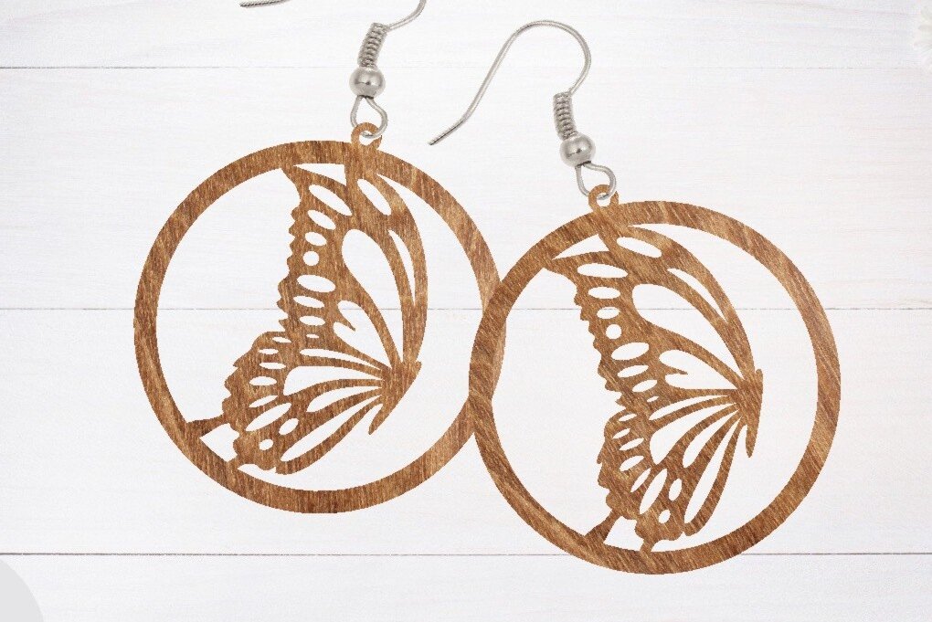 Intra απο ξύλο plywood 3mm-4mm πάχος κοπής με λέιζερ σκουλαρίκι πεταλούδας, Δίασταση 3×3 cm INTRAFABR-66875975