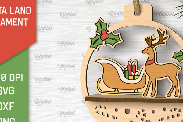 Intra απο ξύλο plywood 3mm-4mm πάχος – κοπής με λέιζερ στολίδι Santa Land Δίασταση 20×20 cm INTRAFABR-102600444
