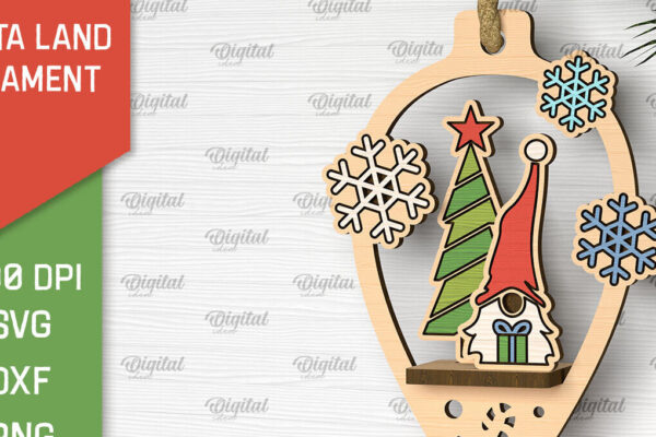 Intra απο ξύλο plywood 3mm-4mm πάχος – κοπής με λέιζερ στολίδι Santa Land Δίασταση 20×20 cm INTRAFABR-102600466