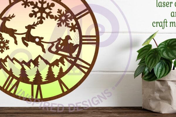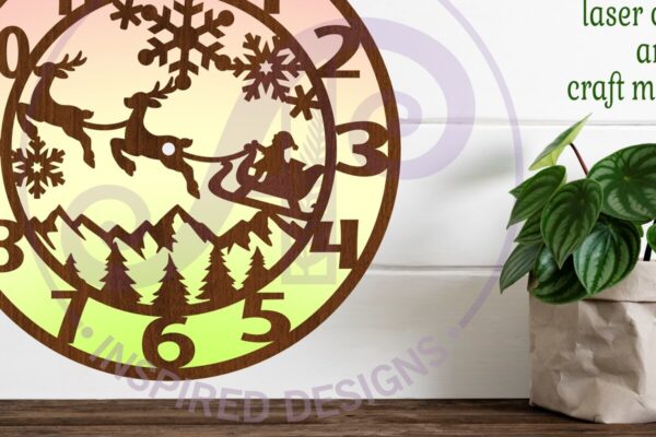Intra απο ξύλο plywood 3mm-4mm πάχος – κοπής με λέιζερ Χριστουγεννιάτικο ρολόι τοίχου Δίασταση 30×20 cm INTRAFABR-109050074