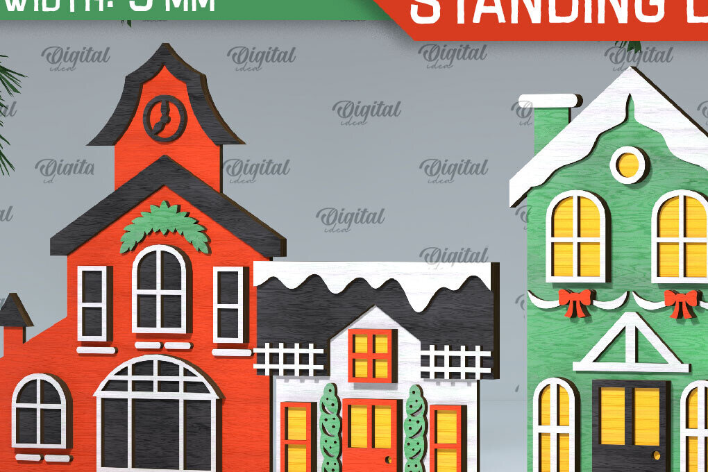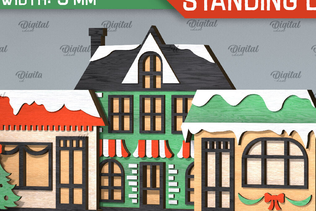 Intra απο ξύλο plywood 3mm-4mm πάχος κοπής με λέιζερ 3D Santa’s Village Δίασταση 15×15 cm INTRAFABR-106193483