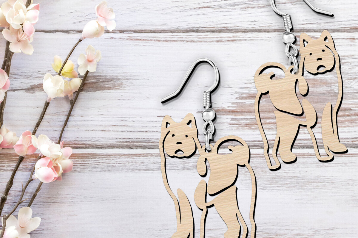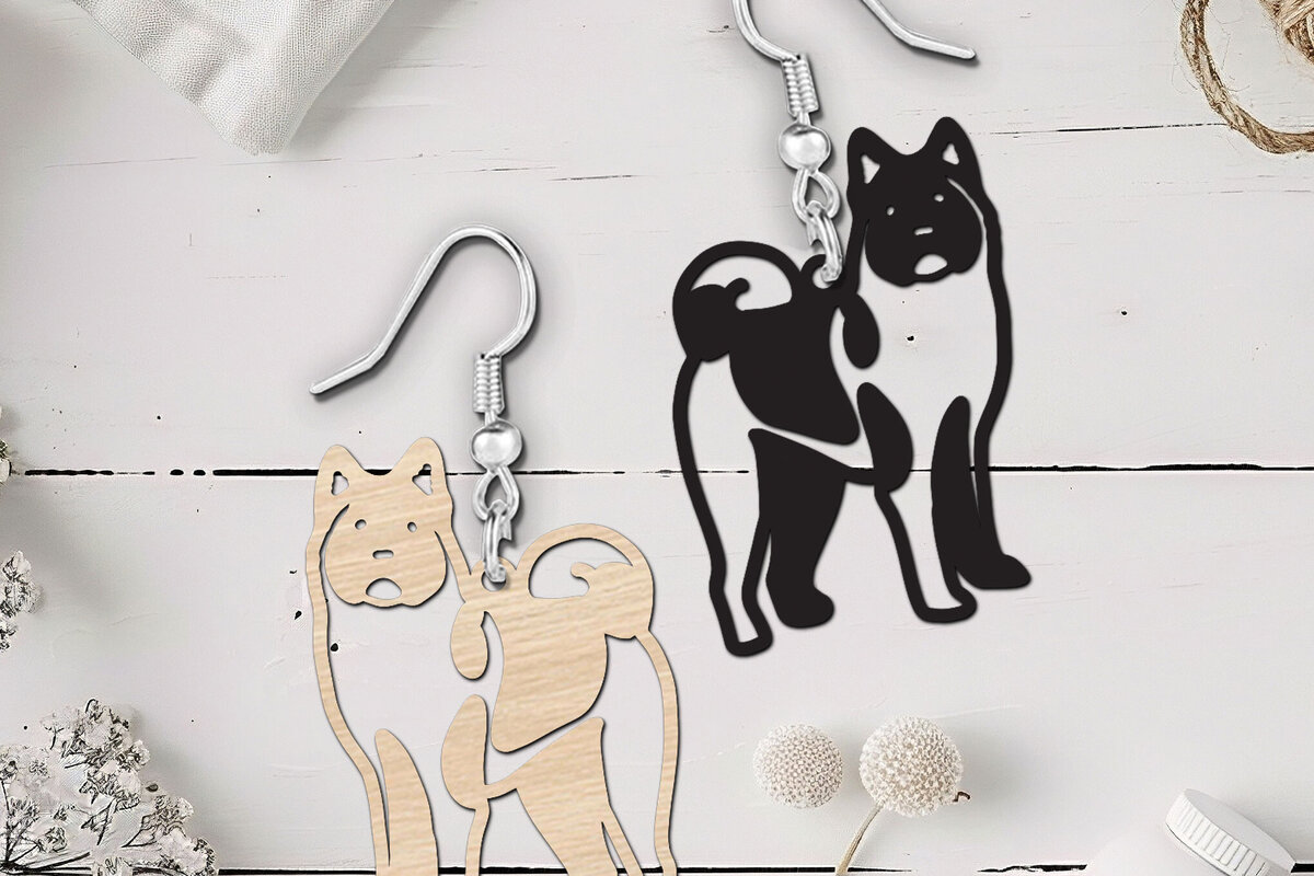 Intra απο ξύλο plywood 3mm-4mm πάχος κοπής με λέιζερ American Akita Earrings Δίασταση 1×1 cm INTRAFABR-120102531