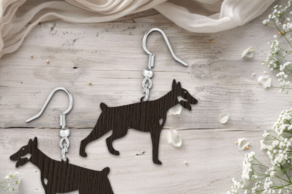 Intra απο ξύλο plywood 3mm-4mm πάχος – κοπής με λέιζερ Doberman Dog Earrings Δίασταση 900×900 cm INTRAFABR-119131310