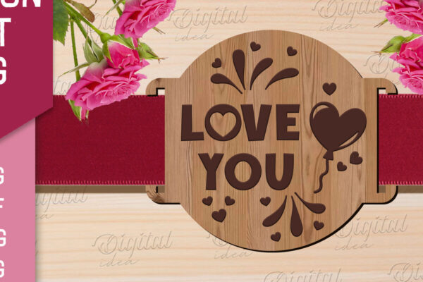 Intra απο ξύλο plywood 3mm-4mm πάχος – Κοπή λέιζερ με κορδέλα δώρου Αγίου Βαλεντίνου Δίασταση 20×20 cm INTRAFABR-83741187